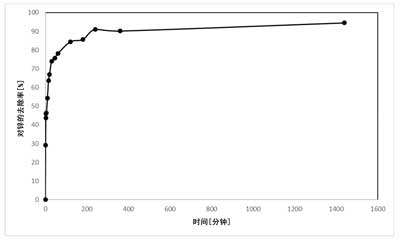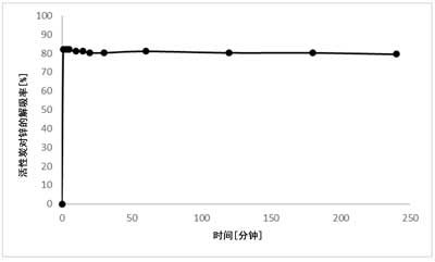 圖3:去除鋅與時(shí)間的關(guān)系。重復(fù)進(jìn)行實(shí)驗(yàn),結(jié)果范圍最大為3個(gè)百分點(diǎn)。