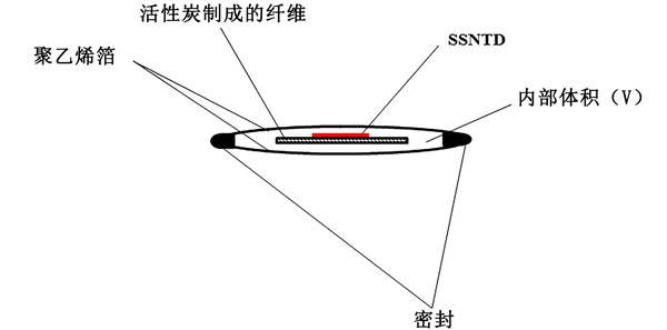 帶溫度補(bǔ)償?shù)幕钚蕴刻綔y(cè)器模塊設(shè)計(jì)如圖1所示。內(nèi)部傳感器使用活性炭吸附器和固體核徑跡探測(cè)器(SSNTD)。在本實(shí)驗(yàn)中,使用了三種活性炭制成的纖維;钚蕴坑米麟笔占/散熱器,而SSNTD則檢測(cè)輻射量。補(bǔ)償模塊的壁由低密度聚乙烯或高密度聚乙烯箔制成。根據(jù)造型選擇箔的厚度和表面積,以達(dá)到合適的溫度補(bǔ)償。。當(dāng)探測(cè)器在探測(cè)器模塊外時(shí),校準(zhǔn)系數(shù)為CF0。然而,當(dāng)探測(cè)器放置在其校準(zhǔn)因子內(nèi)時(shí),平衡時(shí)將為CF =CF0.ρ,其中ρ是“穿透率”,即模塊體積內(nèi)空氣中的平衡時(shí)氡濃度與濃度的比值在它周圍的空氣中。CF0與吸附容量k成正比并且遵循與k相同的溫度趨勢(shì),而CF與kρ成正比。正如在其他地方所指出的,穿透體積中壁的部分ρ隨著溫度的升高而增加,因此溫度的趨勢(shì)與k的趨勢(shì)相反。選擇氣體擴(kuò)散通過(guò)的壁材、厚度、壁表面積和“補(bǔ)償模塊”的體積,以使kρ的溫度變化在應(yīng)用的溫度區(qū)間內(nèi)盡可能小。