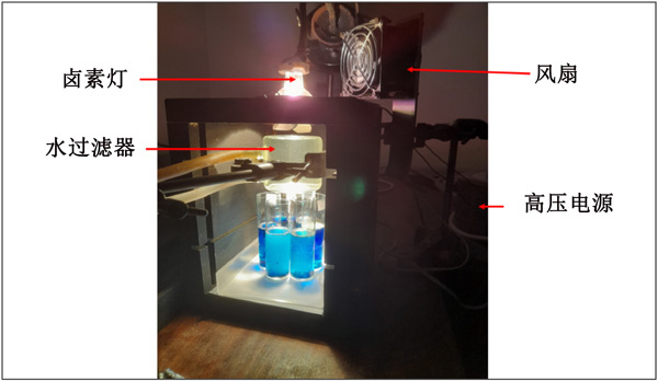 圖2:實(shí)驗(yàn)裝置:使用白光光催化去除亞甲基藍(lán)。