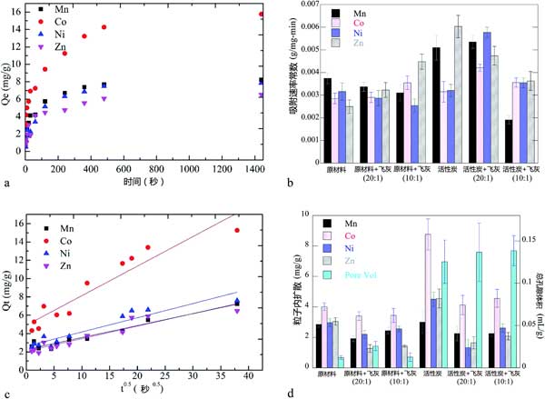 進行吸附實驗以確定使用生物炭和活性炭來模擬來自模焦化廢水中的重金屬的可能性。一般來說,煤含有各種重金屬,其特征和濃度因礦山和地區(qū)而異。為了選擇一組代表性的重金屬進行研究,在任何處理之前從焦炭廠收集焦化廢水樣品,并通過電感耦合等離子體質譜測試。發(fā)現(xiàn)廢水含有統(tǒng)計學上顯著量的Co,Mn,Ni,Zn和Se。這四種金屬在處理后存在于焦化廢水和水中,因此吸附結果適用于活性炭處理前和處理后的樣品。此處檢測到的金屬在煤炭廢水和污染水流中的濃度也各不相同,包括:其他廠的焦化廢水樣品,水被煤泥污染等。因此,雖然所有廢水都存在相當大的異質性,但本研究中使用的四種金屬代表了一般的工業(yè)焦化廢水。