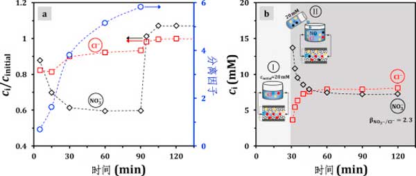 硝酸鹽和氯化物的電吸附:離子選擇性由動力學和平衡控制