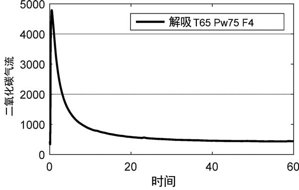 在實驗中通過在溫和溫度下的水分振蕩進行解吸實驗,以使活性炭中碳酸鉀再生回碳酸鉀倍半水合物在升高的溫度和氮氣流下的再生步驟將具有大的能量損失,使這個過程在經濟上不可行。圖5顯示了二氧化碳濃度峰值剛好低于5000ppm。質量平衡表明,在實驗中釋放了吸附的總二氧化碳的50%。盡管最大二氧化碳濃度對于實際應用來說不夠高,但該實驗證明了在活性炭內碳酸鉀倍半水合物和碳酸鉀之間循環(huán)的概念。需要進一步優(yōu)化解吸過程。
