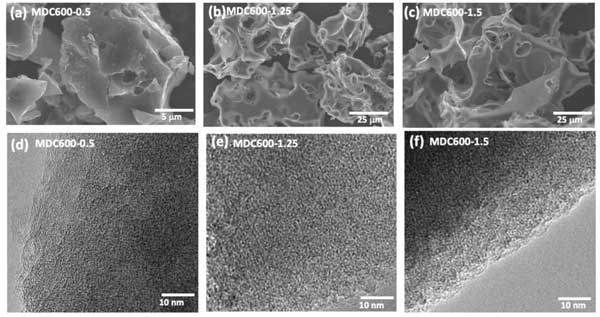 活性炭吸附劑是通過兩步熱解過程制備的,該過程包括將奶粉轉(zhuǎn)化為生物炭,然后在高溫下用堿活化。同時還增加了細微的差別,即涉及一種輔助化學或物理試劑,可在材料上蝕刻出納米級的孔隙。牛奶由多種蛋白質(zhì),脂肪和礦物質(zhì)組成。有特別地酪蛋白蛋白(一種磷酸蛋白家族)以膠束的形式存在于牛奶中,通過疏水相互作用,氫鍵結(jié)合以及膠束核心內(nèi)磷酸鈣納米簇的橋接而在內(nèi)部得到穩(wěn)定。圖1正是這些磷酸鈣-酪蛋白蛋白簇充當碳的3D結(jié)構(gòu)發(fā)展的模板,因為它們在熱解的初始階段得以保存,在此階段奶粉被加熱到400°C,并防止活性炭內(nèi)結(jié)構(gòu)塌陷。在第二個活化步驟中,堿KOH與碳反應生成碳酸鉀,碳酸鉀分解并留下富氮和富氧的微孔。所得的活性炭顯示出有效且可逆地捕集二氧化碳,同時排除了水蒸氣。