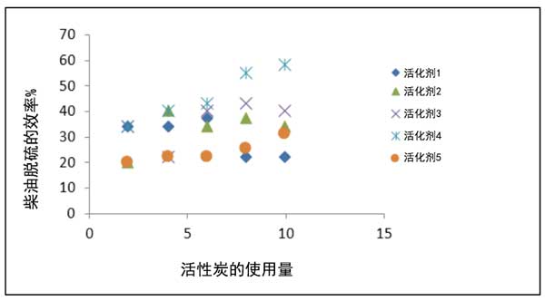 圖1:不同活化劑活化的活性炭對(duì)柴油脫硫。