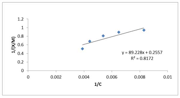 圖2:Langmuir等溫線柴油通過(guò)活性炭去除硫。