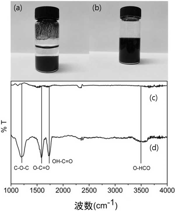 圖2:活性炭和官能活性炭分散體與超聲處理1個小時。的FT-IR光譜Ç活性炭和d官能活性炭。